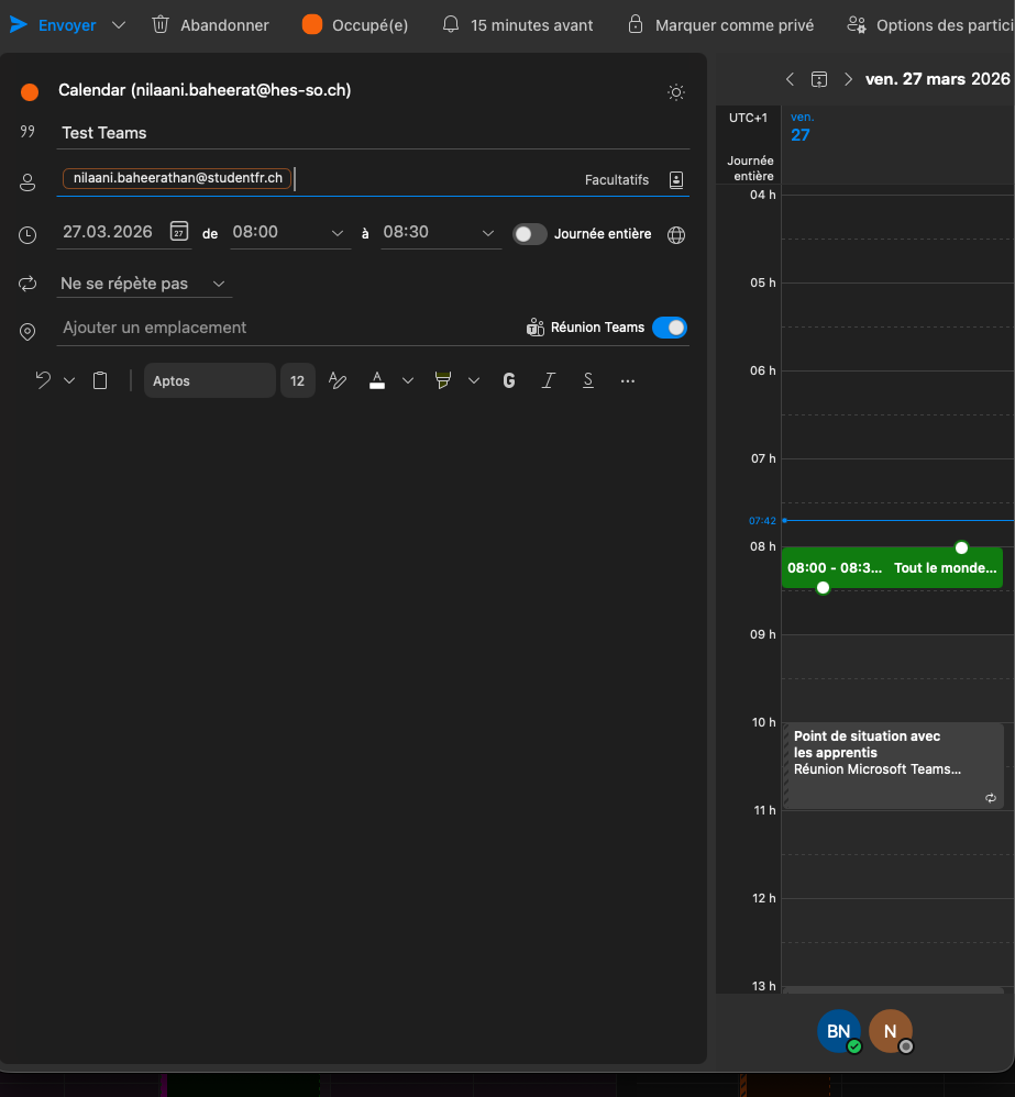 L'organisateur doit ouvrir Outlook, créer un nouvel événement et cocher la case « Réunion Teams ».