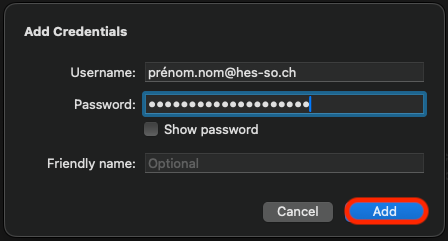- Rentrer vos identifiants compte HES-SO (8.8)