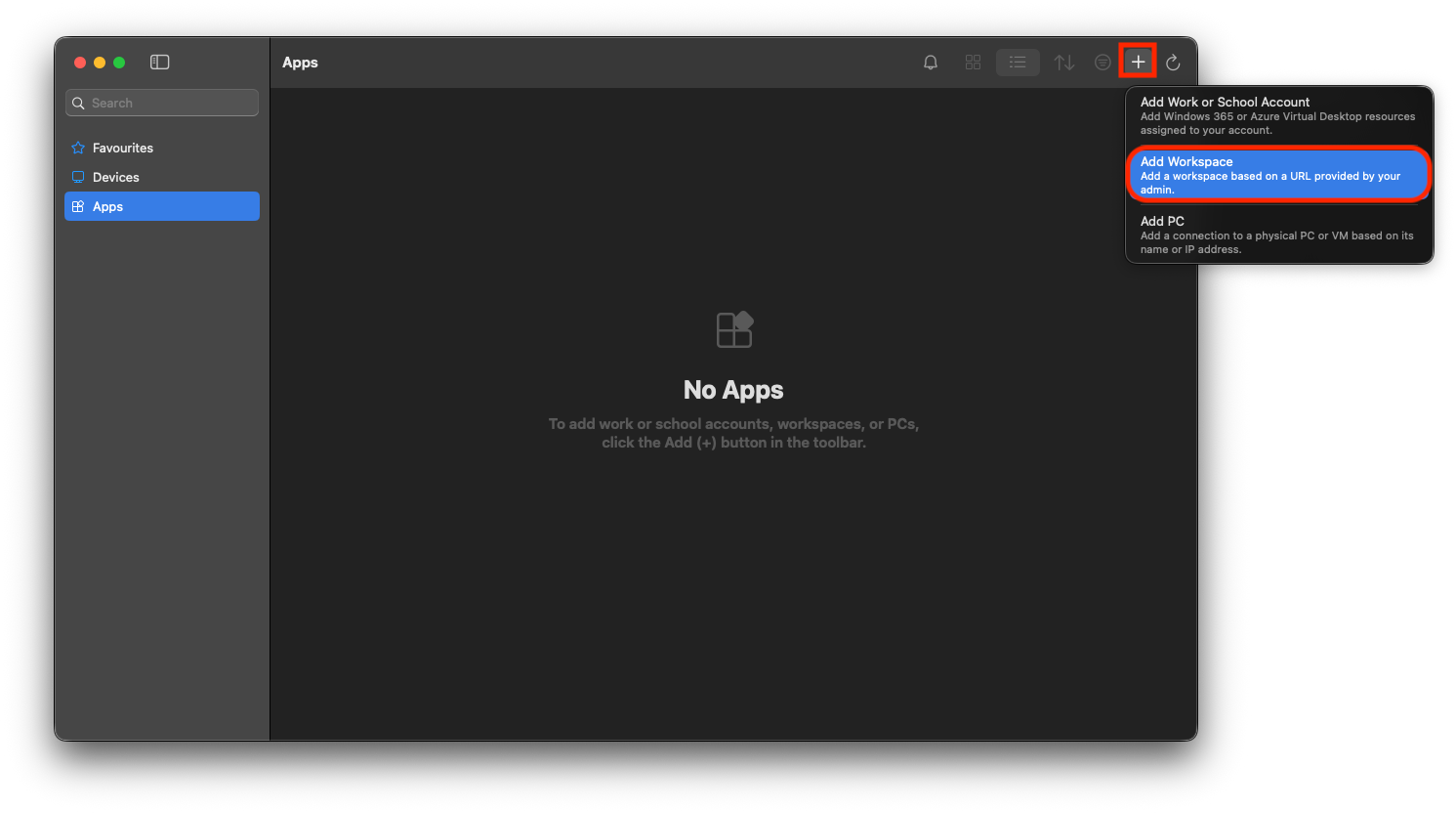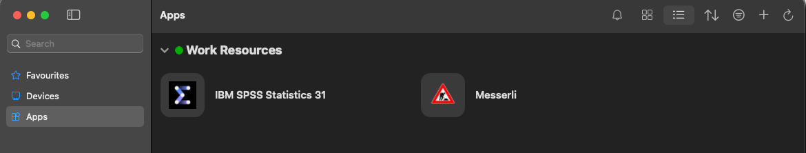 - Votre “Workspaces” devrait apparaître avec la liste des applications auxquelles vous avez accès